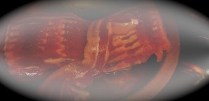 Fry 3 slices of thick applewood smoked bacon. Take out of the grease to rest on a paper towel. Save the bacon bits for another use– or if you’d like, let them hang out in the stew.