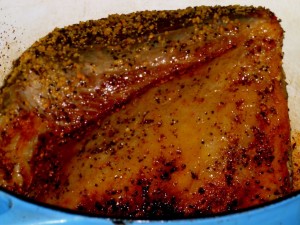 You will have very tender meat, falling apart, moist and good– soaked up in flavors, the vegetables of the meat sauce and added herbs and seasonings that are cooked in; so well-worth the wait of the day for this meal.