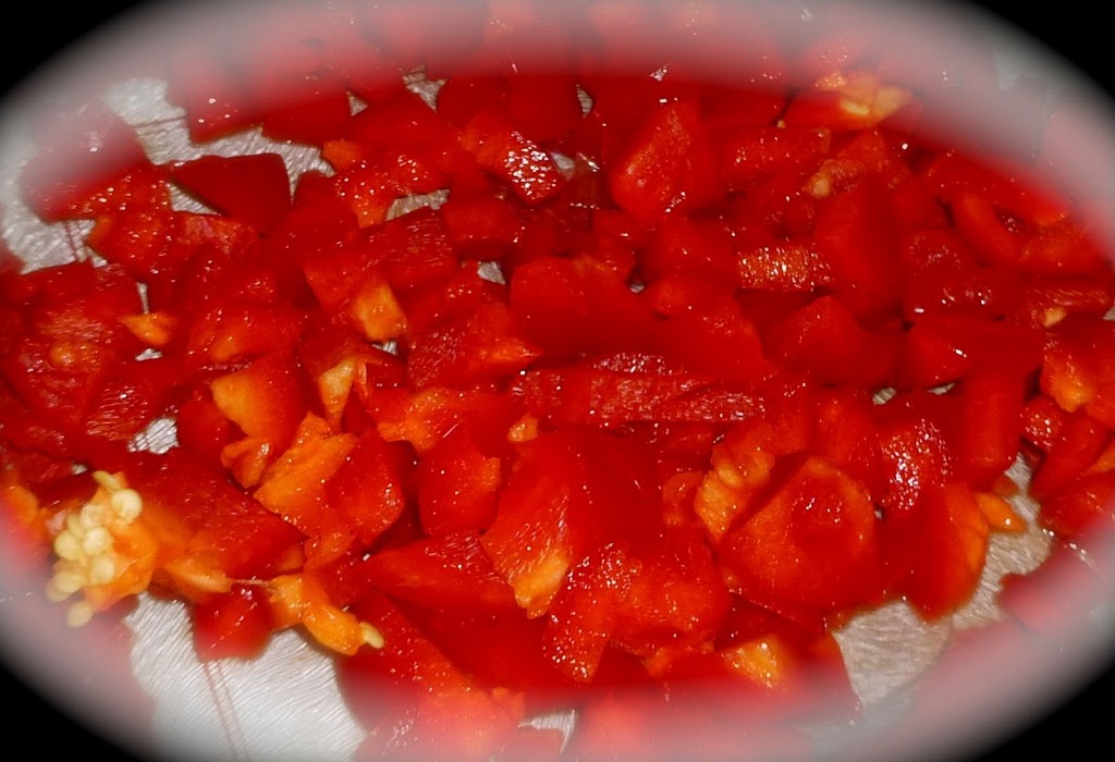 Then throw in pearl onions, whole, with chopped red bell pepper. You can also do this before the beer is added; depends on how much you need a release of the searing liquid that is practically at a burning stage– The beer is a life savour for the pot and the liquid from the seared meat, what is left in the pot. It chooses for you.