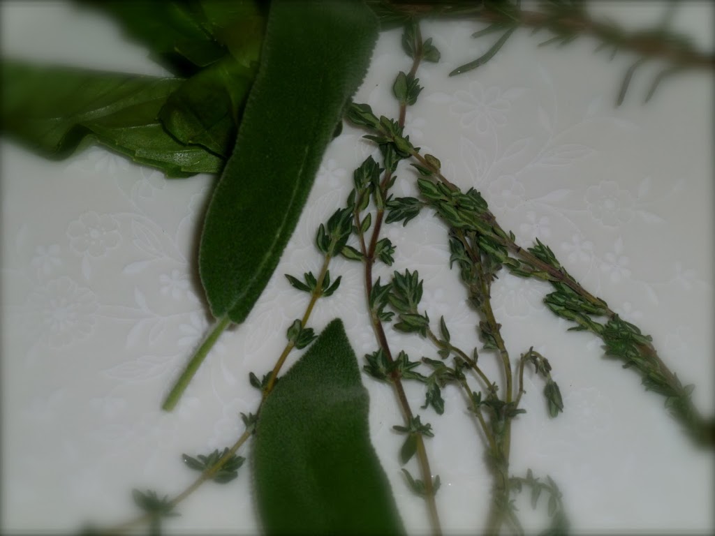 Stir well, then add all ingredients– meat over onions and chopped peppers, then remaining vegetable ingredients along with a good dose of salt & pepper and herbs of rosemary, thyme, basil and sage…