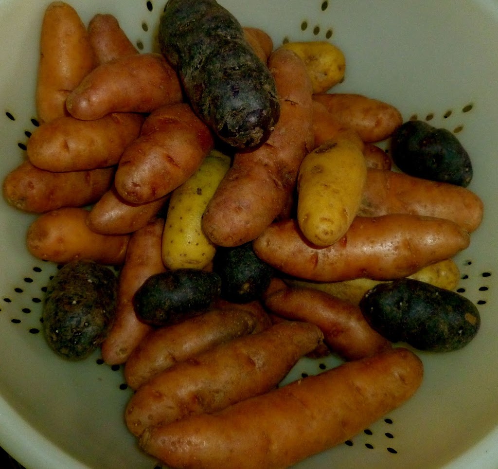 and mixed fingerling potatoes which yield a good taste of flavor, all of them left whole.