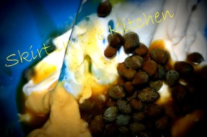 Put on the mayonnaise mixture…  you know– the capers and all, the good stuff of zest and sass~!