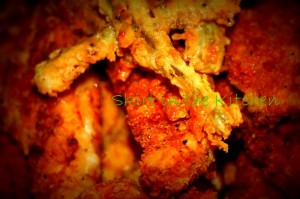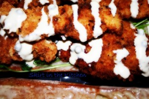 Combine 2 cups flour, 1 cup panko bread crumbs, smoked paprika, salt and pepper.  Whisk 4 egg whites, 1 1/2 cups buttermilk,