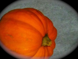 Leave on the peelings; they become tender.  Preheat oven to 425 degrees Fahrenheit.  Drizzle all sides with olive oil.  Bake…  just until tender, no longer– You want tender peel as well as the interior of squash to be tender– and not mushy.