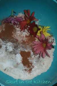 Dry ingredients: 2 cups whole wheat pastry flour, 1/4 teaspoon sea salt, 1 1/2 teaspoons cinnamon,