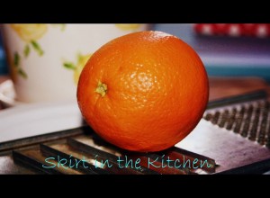 Zest an orange for 1 teaspoon.  Lightly beat with a fork in a separate bowl the zest, 1 3/4 cups cold buttermilk and 1 extra-large egg beaten well.  Slowly mix on low speed buttermilk mixture into flour mixture.