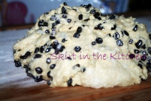 Mix 1 cup dried currents with 1 tablespoon flour and mix into dough as well.