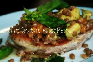 Pork with Lentil, Orange, Avocado, and Basil Salad