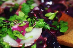 and 1 small head of red cabbage– chopped. Season with freshly grated black pepper and kosher salt…