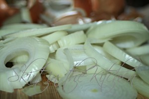 Sauté 3 chopped onions in 1/4 olive oil. After 3 minutes, add 4 minced or finely chopped garlic cloves.