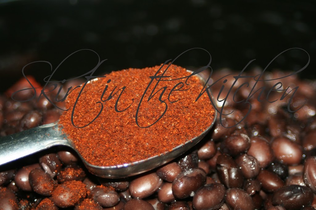 Stir in 4/15-ounce cans black beans that are drained and rinsed. Season with 3 tablespoons chili powder, 2 tablespoons cumin,