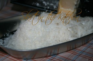 Lay 2 large slices of Lorraine cheese over the very top, allowing extra olive oil to seep over it.  Cover the top, soaking in the olive oil, Panko bread crumbs.