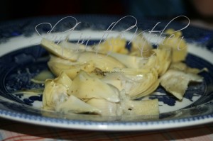 Drain 1 can, 7.5 ounces, artichoke hearts.