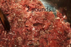 Put this in– and 1 14.5-ounce can stewed tomatoes, 1 14.5-ounce can diced tomatoes, 5 15-16-ounce cans chili beans, 2 15-16-ounce cans dark red kidney beans, 1 15-16-ounce can light red kidney beans.