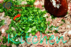 My husband made this– but, you know, I “suggested” a few things, just like a woman… parsley, spicy tomato sauce, shallot, garlic– playing with the curtains, “redding up the room”– just my thing (: putting in notions when his face was wrinkling up his nose; but, hey, he liked it.