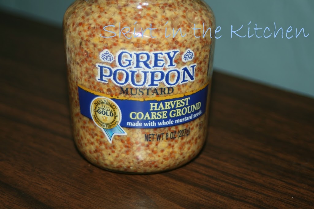In a medium bowl, whisk 1/4 cup apple cider vinegar with 2 tablespoons whole grain mustard.  In a steady stream, slowly whisk in 1/2 cup extra-virgin olive oil– then salt and pepper to taste.  Pour dressing over the salad, tossing to combine.