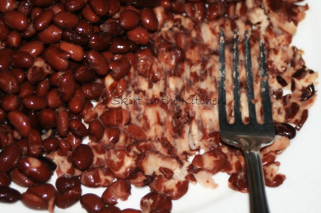 Mash the black beans.