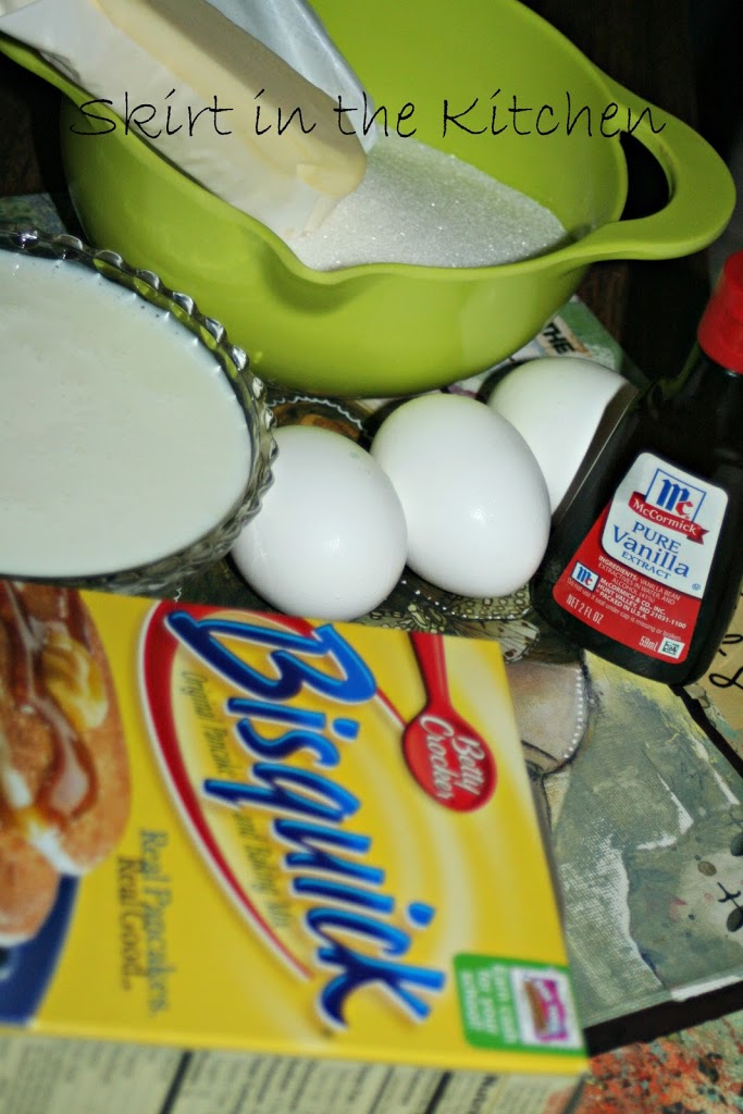 Preheat oven to 350 degrees Fahrenheit. Blend in a food processor or blender– 3 eggs, 1 1/3 cups sugar, 1 cup buttermilk, 1/2 cup Bisquick, 1/3 cup cooled melted butter, and 1 teaspoon vanilla extract. Bake in a buttered pie plate for 30 to 40 minutes. Cool 10 minutes on a rack before slicing to serve.