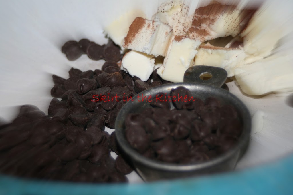 Make the Mexican Chocolate Dipping Sauce: In a small heavy saucepan, combine together 3/4 cups semi-sweet chocolate, 1/4 cup unsalted butter, 1/2 teaspoon ground pasilla or ancho chili powder, and 1/4 teaspoon ground cinnamon. Cook and stir over medium heat until melted. Stir in 2/3 cups granulated sugar,