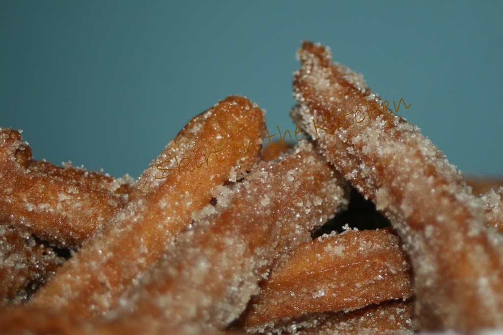 Roll in 1/4 cup granulated sugar combined with 3/4 teaspoons ground cinnamon, then dip into warm chocolate.