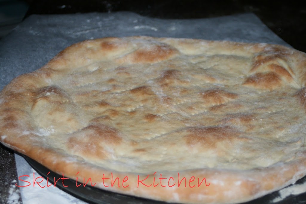 Preheat oven to 425 degrees Fahrenheit. Grease a baking sheet if not using a pizza stone. Lightly cover it with cornmeal. Roll the dough, transfer to baking sheet, and prick with a fork. Bake 12 minutes or until browned.