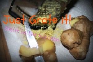In a large glass, mix contents:  3 freshly squeezed limes (then strained), 3 ounces white tequila, 3/4 ounces triple sec.  When 30 minutes is up, when the ginger syrup has chilled, add 1 ounce to the mixture.  Pour over ice.