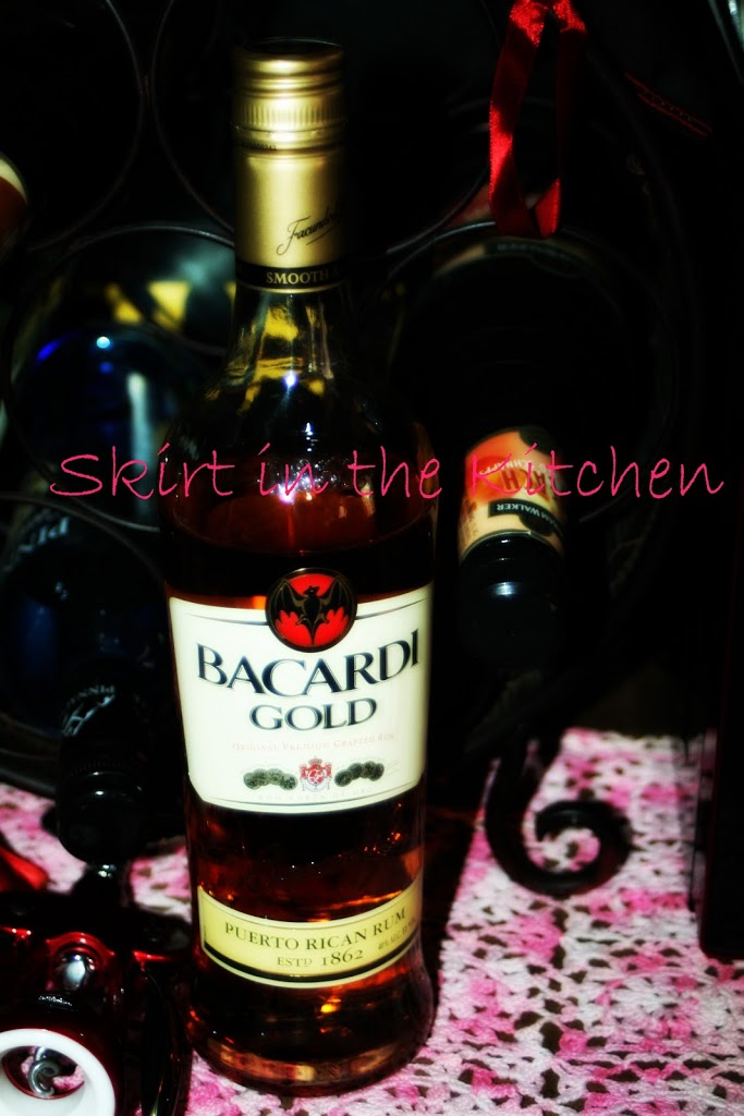 Cover 1/4 cup raisins with spiced rum in a small sauce pan.  Bring to a boil over low heat, then turn off and let set until use.