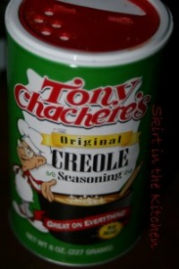 So if not 2 tablespoons from this recipe, add 2 tablespoons from the store-bought creole seasoning, but even before the seasonings– 1 1/2 gallons chicken stock (20 cups), 1 teaspoon black pepper, 1 teaspoon chili powder, 1 teaspoon dried red pepper flakes, 1 teaspoon dried thyme, 2 bay leaves, 2 cloves finely chopped garlic (or minced), and 1 tablespoon kosher salt.