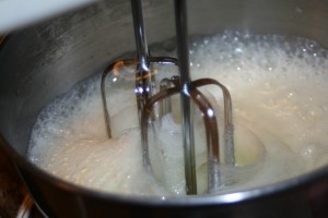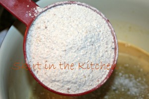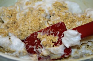 Mix a third of the beat egg whites into the matzo meal mixture,