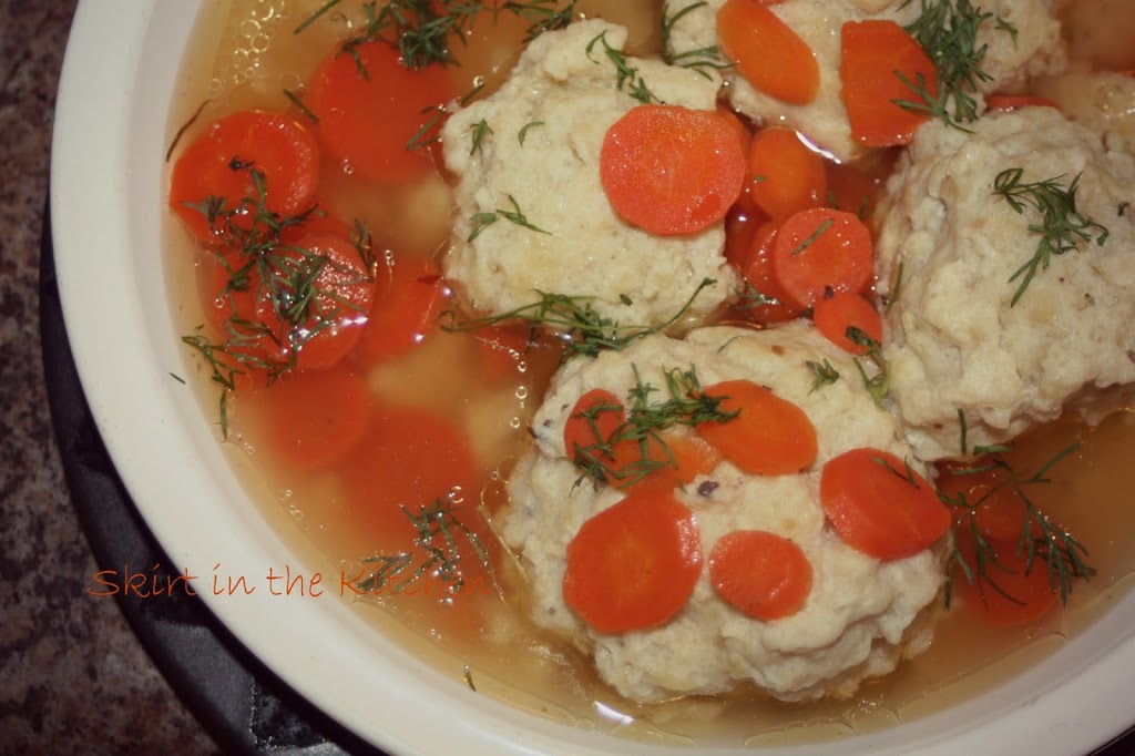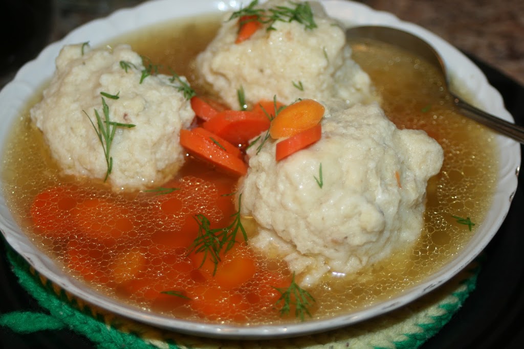 Slice 4 carrots, cut on the diagonal, and drop into the broth during the last 7 minutes of the matzo balls being ready for soup.