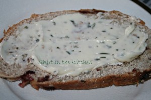 Whip 1 stick salted butter with chopped rosemary and white pepper.