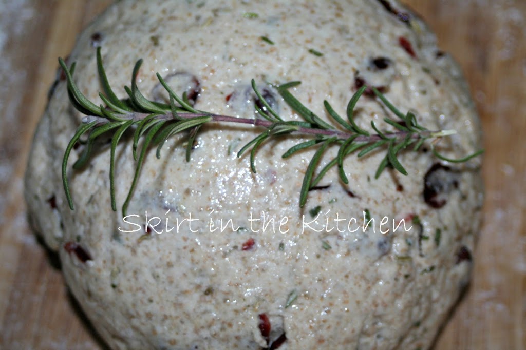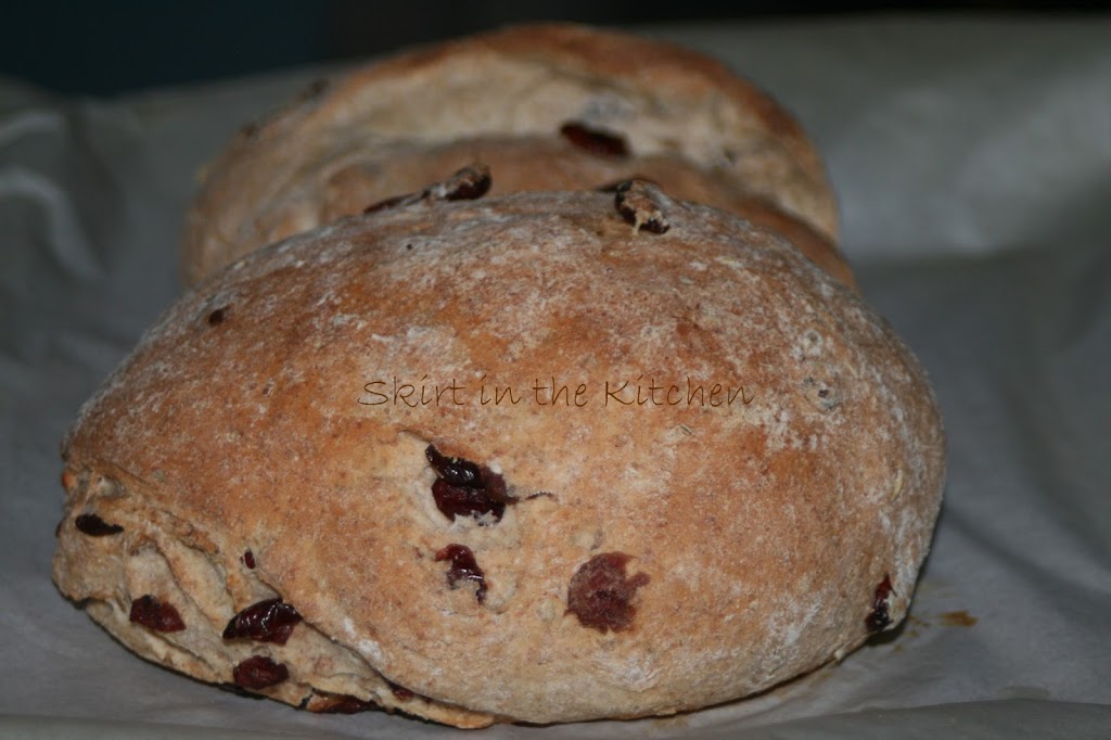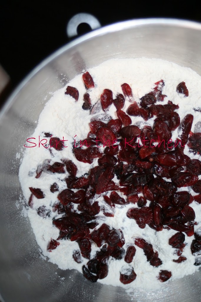 Coat 3/4 cups cranberries in 3 cups bread flour,