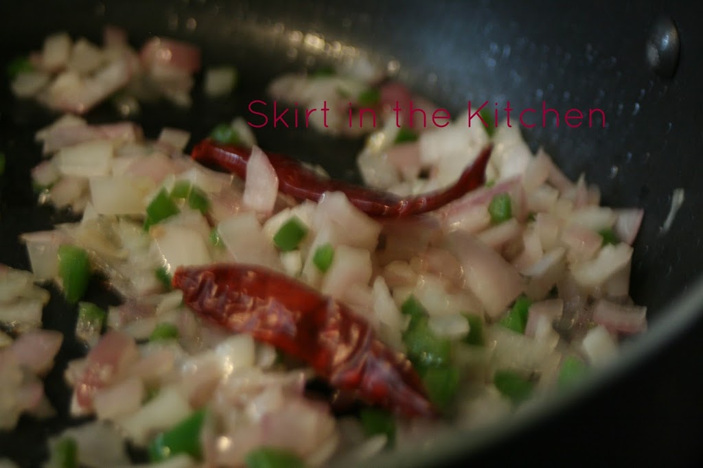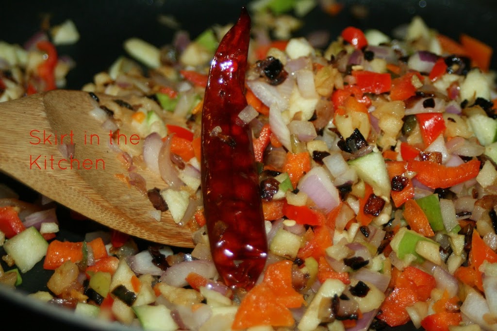 From the very beginning, sauté with 2 or 3 whole chili peppers included in the skillet, stirring occasionally with vegetables.