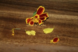 Reserve some of the petals for at the end.  Use 2 marigolds.