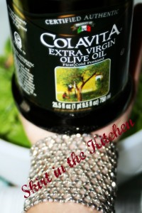 Pour in 3/4 cup extra-virgin olive oil, 2 1/2 tablespoons red wine vinegar, 2 tablespoons freshly squeezed lemon juice– whisk well, add salt and pepper to taste.