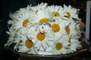 The cake batter recipe is from Cook’s Illustrated– White Layer Cake. Instead of putting in regular vanilla extract, homemade cookie dough-flavored vodka vanilla extract (‘Making Your Own Vanilla Extract’ on May 1, 2013 post, Skirt in the Kitchen) was used in the cake batter as well as in the boiled frosting recipe from Southern Living. I also exchanged the almond extract in the batter for Frontier Coconut Flavor extract. The Shasta Daisies are pesticide-free, lightly cleaned before adhering into frosting. This was fun to make and serve; moist and delicious, a must each year when the daisies are in full bloom.