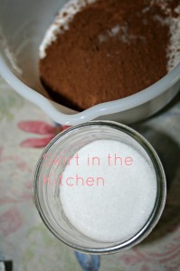 Doubling it having a total of 4 cake cups in all, stir together or whisk to combine 1/2 cup all-purpose flour, 1/2 cup sugar, 1/2 cup cocoa powder, and a large pinch of salt.