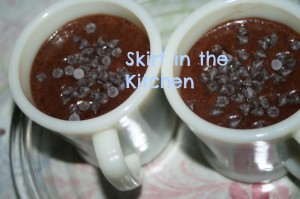 Top with more chocolate chips.  Microwave on high (2 cups at a time) for 2 minutes making sure that it’s cooked while keeping a gooey center, not over-cooking in case heating adjustments of longer time is needed.  Cool 15 minutes before the first bite.
