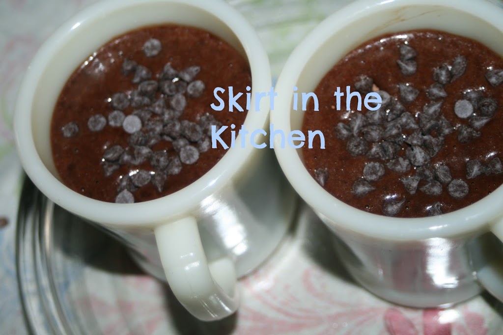 Top with more chocolate chips.  Microwave on high (2 cups at a time) for 2 minutes making sure that it’s cooked while keeping a gooey center, not over-cooking in case heating adjustments of longer time is needed.  Cool 15 minutes before the first bite.