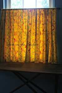 I have a curtain fetish with every season. I tend to tire of the same curtains so I sew them to save on the cost of purchasing ones that are already made. They can run pretty expensive in the stores and online for nice ones. But the adventure of doing something myself, I adore trying my hand at… These are for my kids’ arts and crafts room, so the fabric has to be loud.