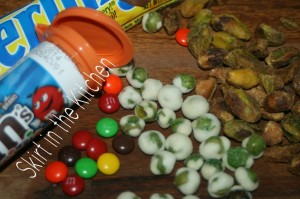 ~ Skirt in the Kitchen ~Sprinkle Snacks: 1 chopped Butterfinger candy bar, 1 M&M's Minis, chopped wasabi peas, chopped pistachio nuts.Melt a few squares of Lindt White Chocolate covered with plastic wrap in the microwave for approximately 1 minute.Dip Lay's Wavy Hickory BBQ chips into the melted white coconut chocolate. Lay onto aluminum foil, drop chopped … [Read more...]