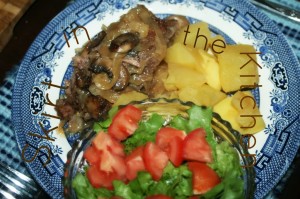 ~ Skirt in the Kitchen ~Salt and pepper dry meat after having been rinsed. In an oven-proof skillet on high heat, sear the meat in mushroom-infused olive oil, on all sides.Transfer meat to a platter; cover with foil to keep warm and from drying out on the edges and top portion. Lightly brown onion in mushroom-infused olive oil, as well, adding a little more oil. … [Read more...]