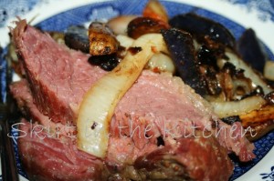 ~ Skirt in the Kitchen ~Rinse and pat-dry with paper towels 1 corned beef brisket; trim excess fat. Sprinkle with freshly ground black pepper on both sides of meat. In 1 tablespoon olive oil and 1 tablespoon unsalted butter, lightly sear over high heat.When both sides have been seared, coat with Demerara sugar, both sides.Lay meat, fat side up, on a bed of … [Read more...]